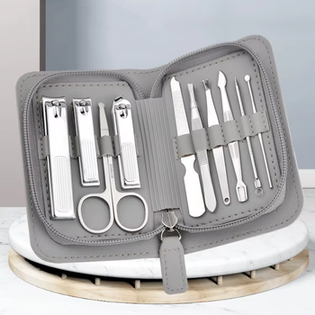 Juego de manicura de acero inoxidable de 10 piezas Estuche de viaje de lujo Incluye cortaúñas Kit de pedicura para cuidado personal o bebés