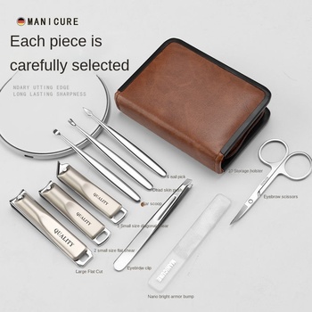 Profesyonel klasik kahverengi lüks dayanıklı 9 adet paslanmaz çelik tırnak makası seyahat tımar kiti manikür seti
